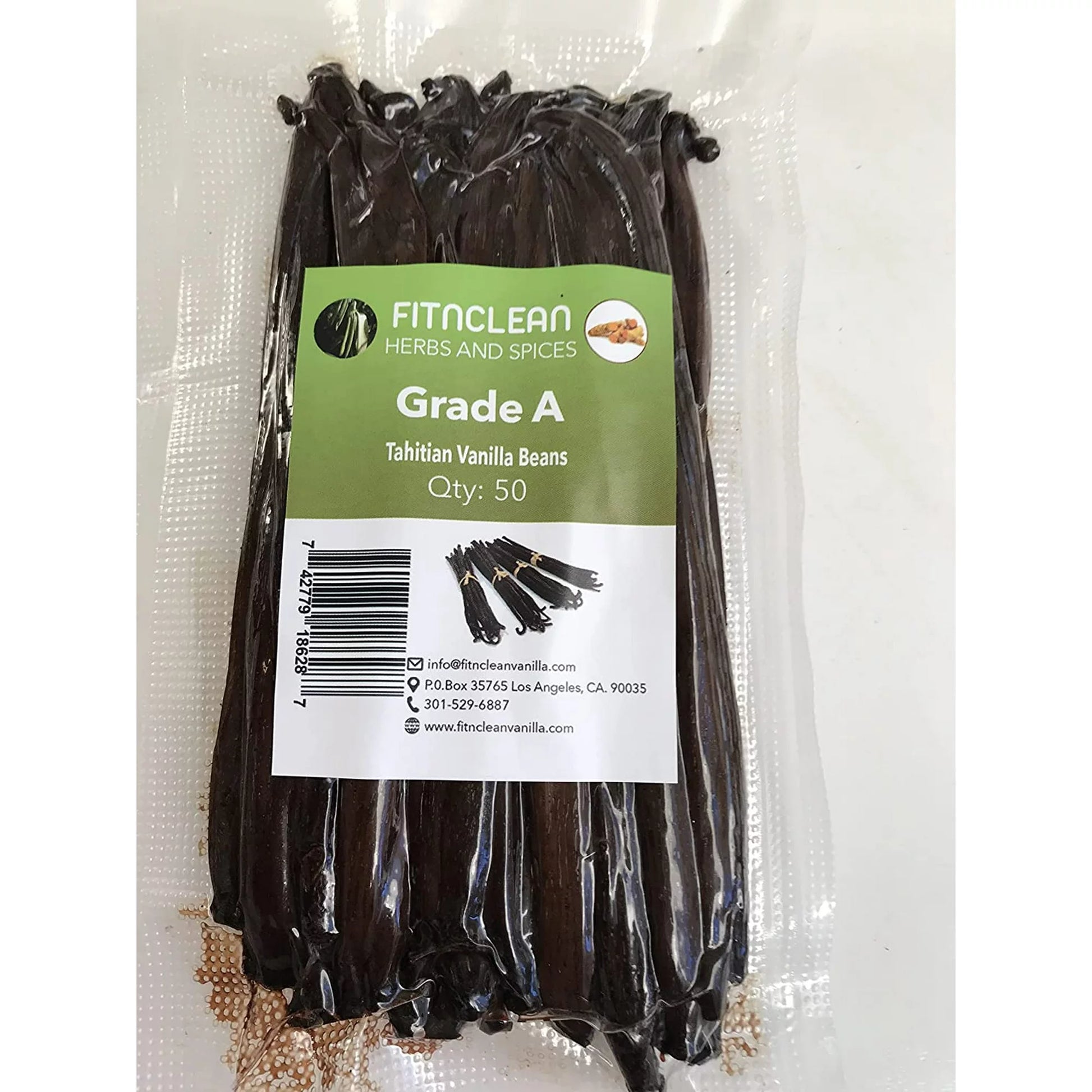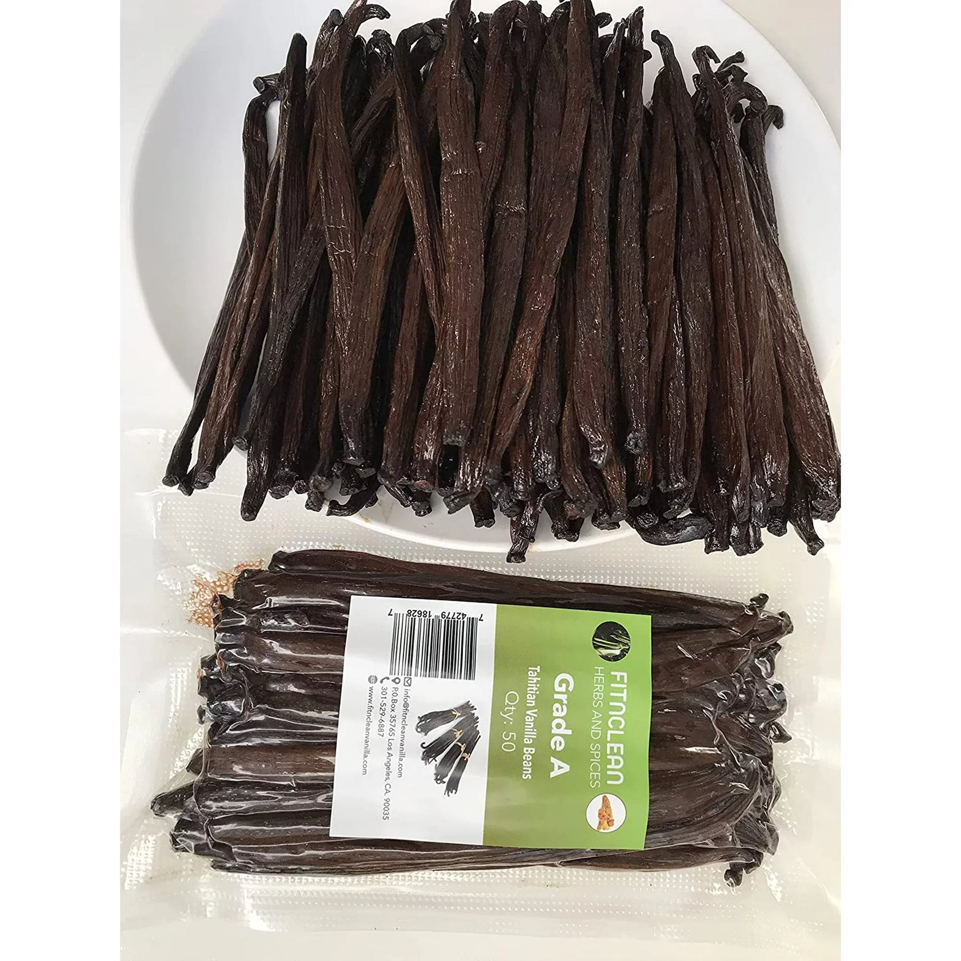 Plump, supple, dense with seeds, oily moist, dark-brown-to-black color, at least 6” long with rich floral aroma. Tahitian Grade A vanilla bean pod typically has vanillin content of ~2.5%; moisture of ~30 -35%. As they age, they may develop the remarkable crystal-like features, the expression of high vanillin content. Great for all vanilla uses - cooking, baking, brewing, extract.